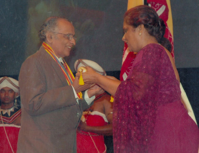 Being conferred with the title “Deshabandu” by former President of Sri Lanka, Mrs. Chandrika B. Kumararanatunga - 2005.