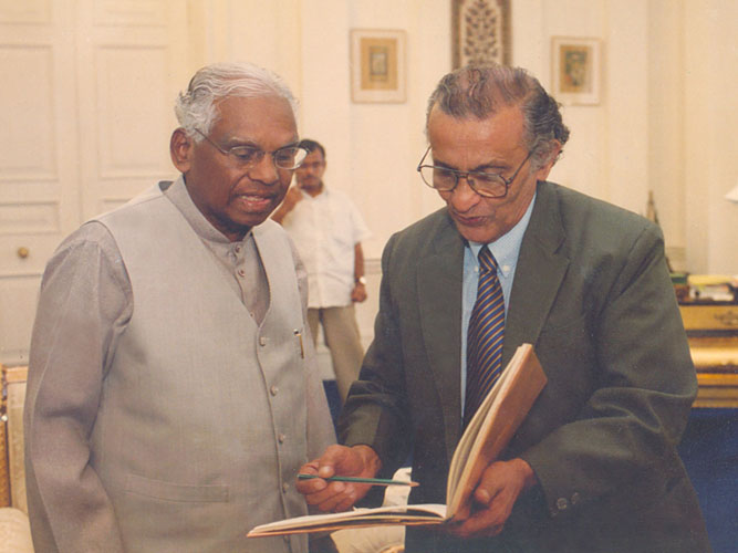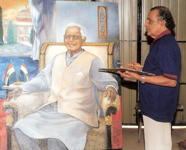 With late Mr. K.R Narayan, former President of India at Rastrapati Bhawan discussing the painting of his portrait - 2000.