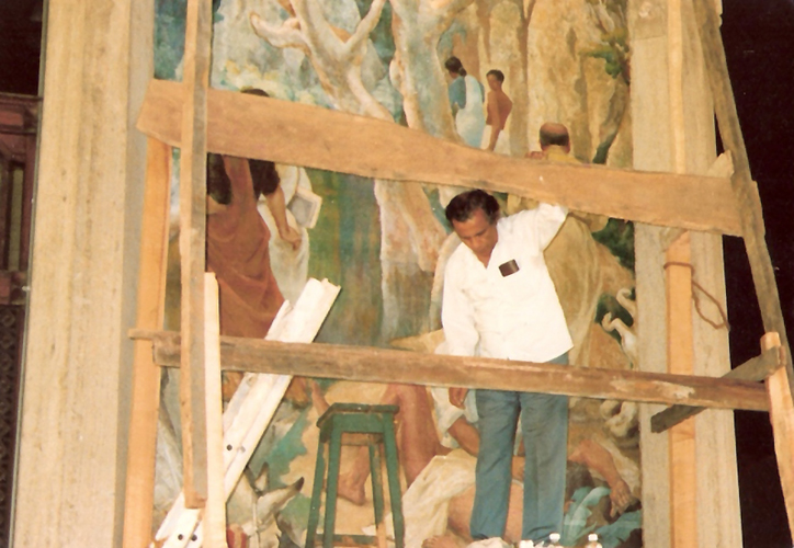 Restoring the paintings of David Paynter at the Chapel of Trinity College Kandy - 1993.