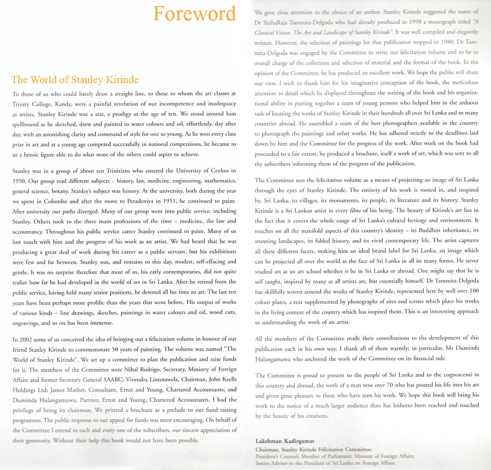 The book "A Classical Vision - The art and landscape of Stanley Kirinde" published in 1998. The book "World of Stanley Kirinde" published in 2005.